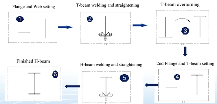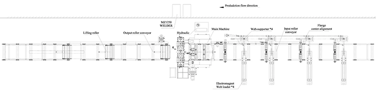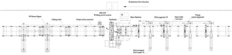 Bazı müşterilerin üretim çıkışını artırması gerekebilir, 2 set kaynak istasyonundan oluşmak için bir kaynak çizgisine ihtiyaç duyarlar. Bir T kirası oluşturmak için ilk kaynak istasyonu, kaynaklı t-kirişini ve 2. flanşı bir H ışını oluşturmak için kaynaklamak için 2. kaynak istasyonu.