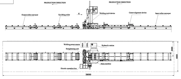 Standart ZHJ3-in 1 saat ışın kaynak çizgileri bir giriş silindir tablosu, ana kaynak ve düzleştirme istasyonu, çıkış çizgisi tablosundan oluşur. Ana kaynak ve düzleştirme istasyonunda, akı geri kazanım üniteleri ile kurulmuş, flanş ve ağ için meşale ve kümelenme cihazları ile birlikte, kaynak güç kaynakları, hidraülik istasyon ve kontrol kutusu da dahil olmak üzere standart çizgi.