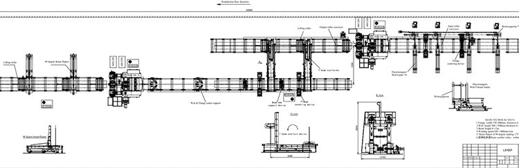 3-1 saatlik ışın kaynak hatları, kaynaktan sonra H ışını, T-kiriş düzeneği, kaynak ve flanş deformasyonu düzleştirmesinin birleşik fonksiyonuna sahiptir. Böylece, H ışını ve t ışını üretimini doğru ve hızlı bir şekilde gerçekleştirebilir. Aşağıdaki avantajlara sahiptir: basit çalışma, daha az işçilik maliyeti ve küçük kaplama alanı.