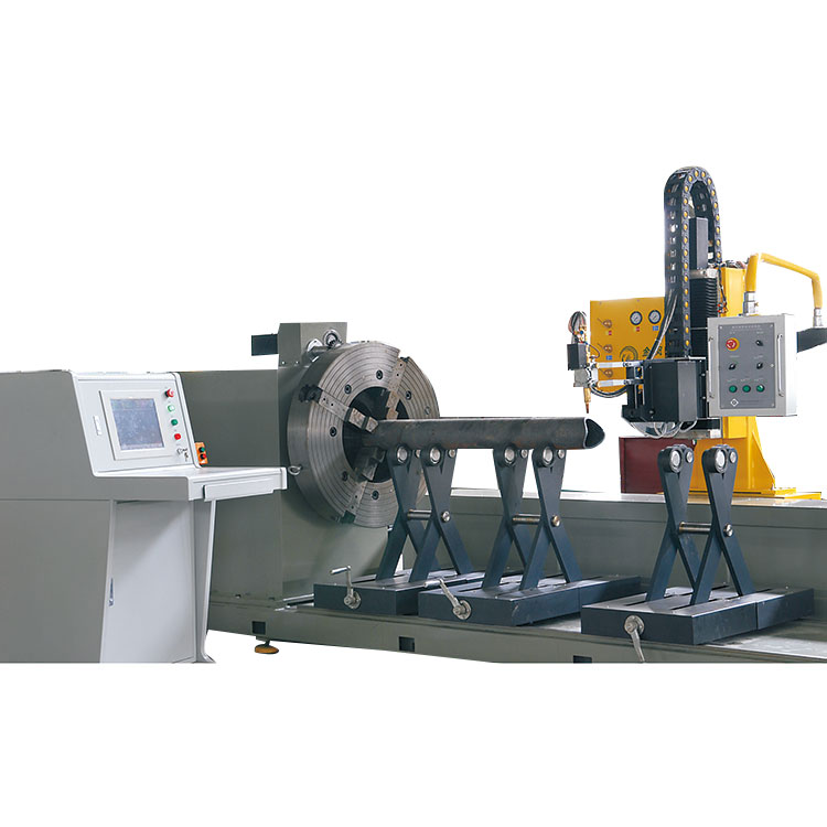 Yuvarlak borunun bir ucu aynaya kenetlenir, diğer ucu serbest destek ile desteklenir. Otomatik kesmeyi gerçekleştirmek için kesme kafasıyla kesme için dönen boruyu döndürmek için mandrenin gücü.